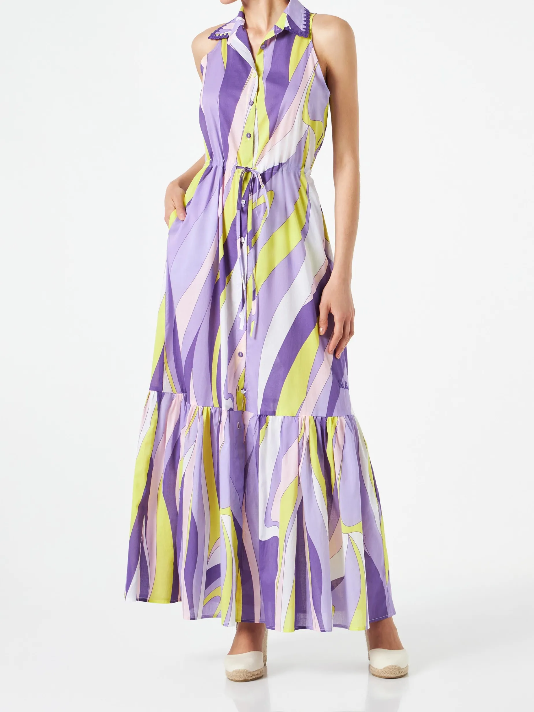 Abito da donna allacciato al collo con stampa onde