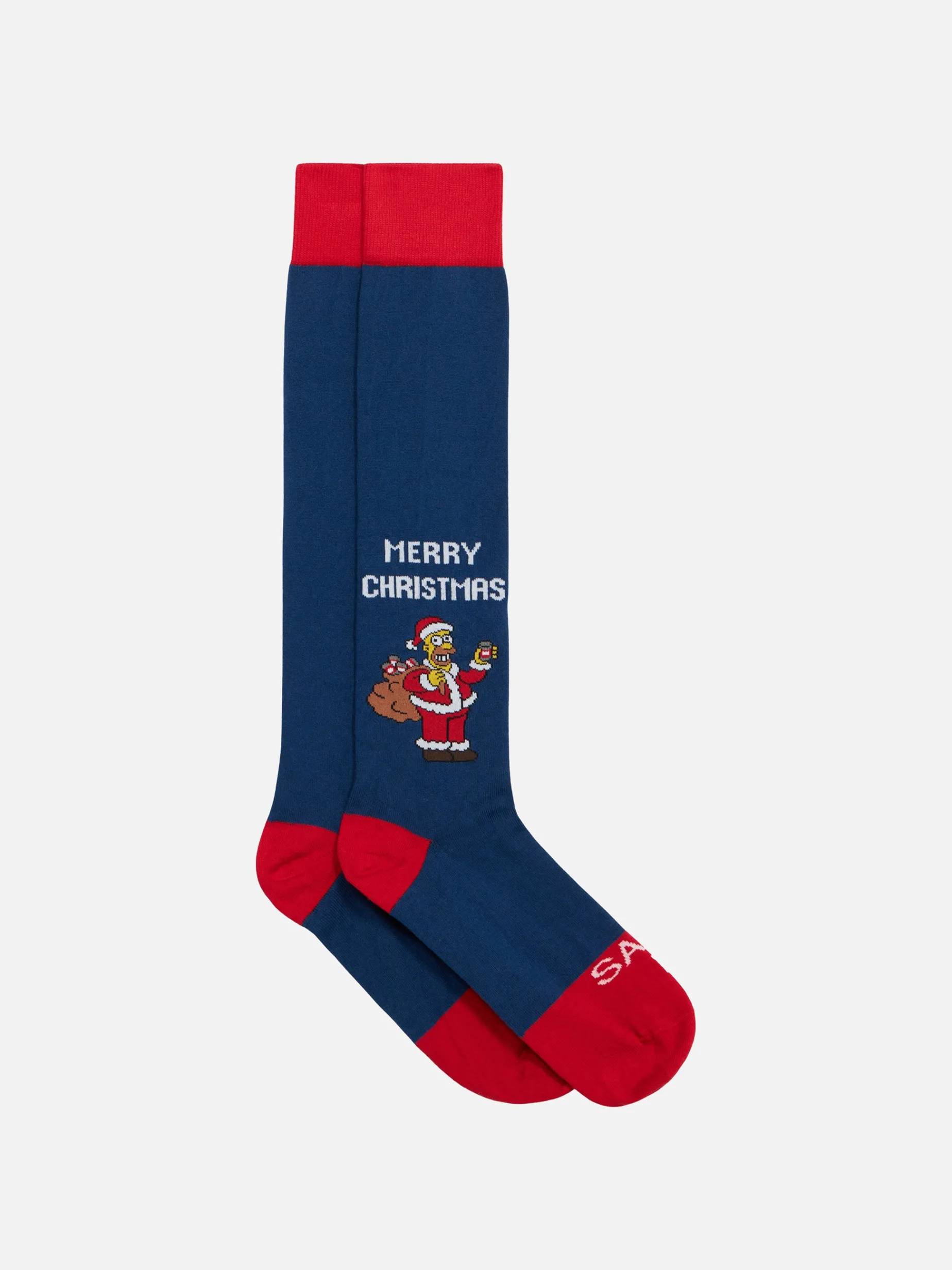 Stampa jacquard Homer Simpson Merry Christmas su sfondo blu