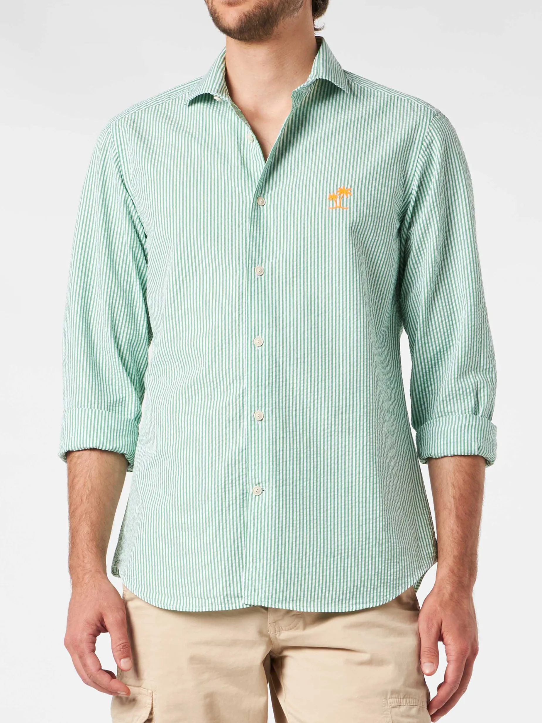Stampa a righe verde chiaro e bianche