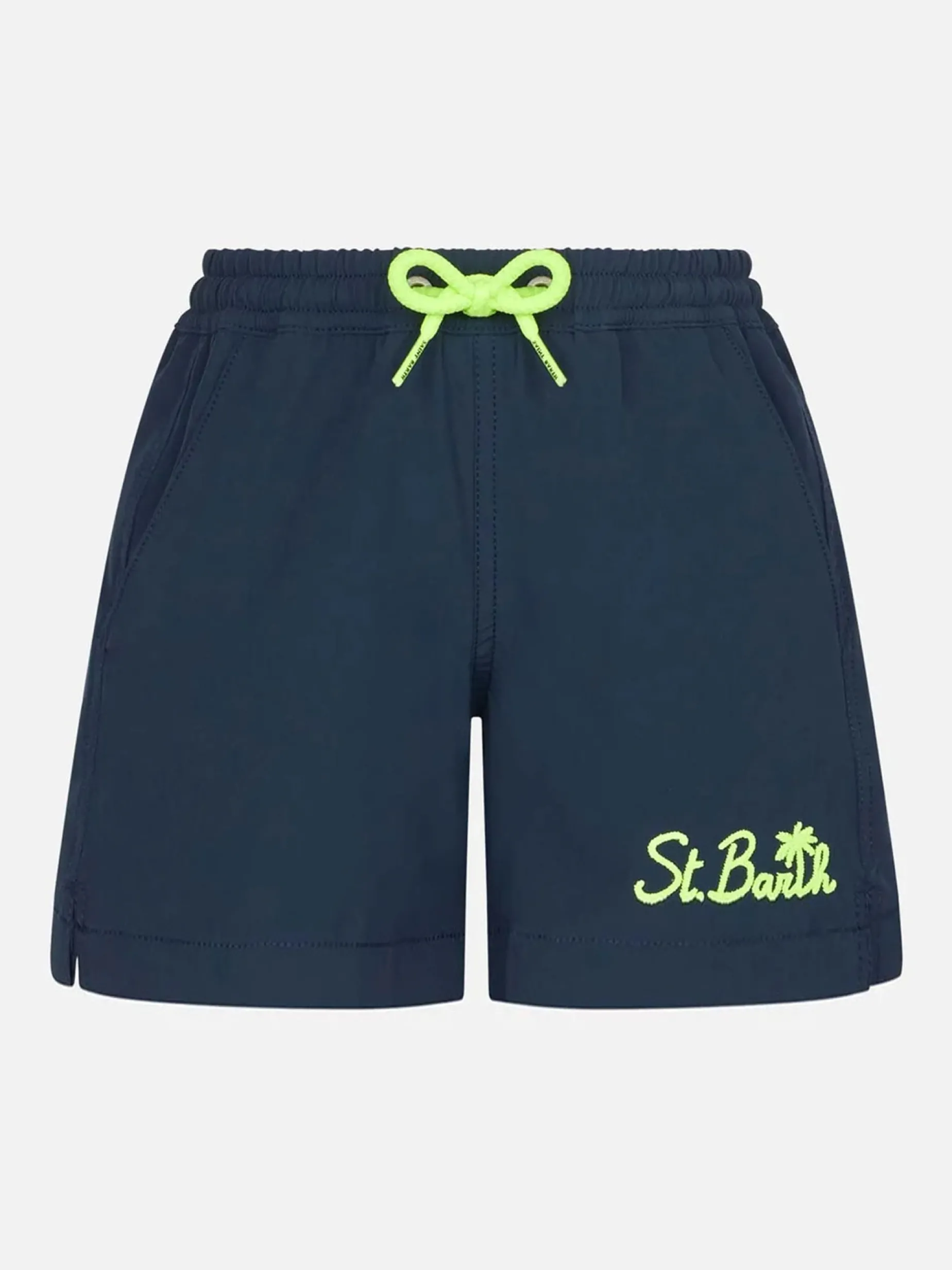 Tinta unita blu navy con cordino in vita giallo fluo