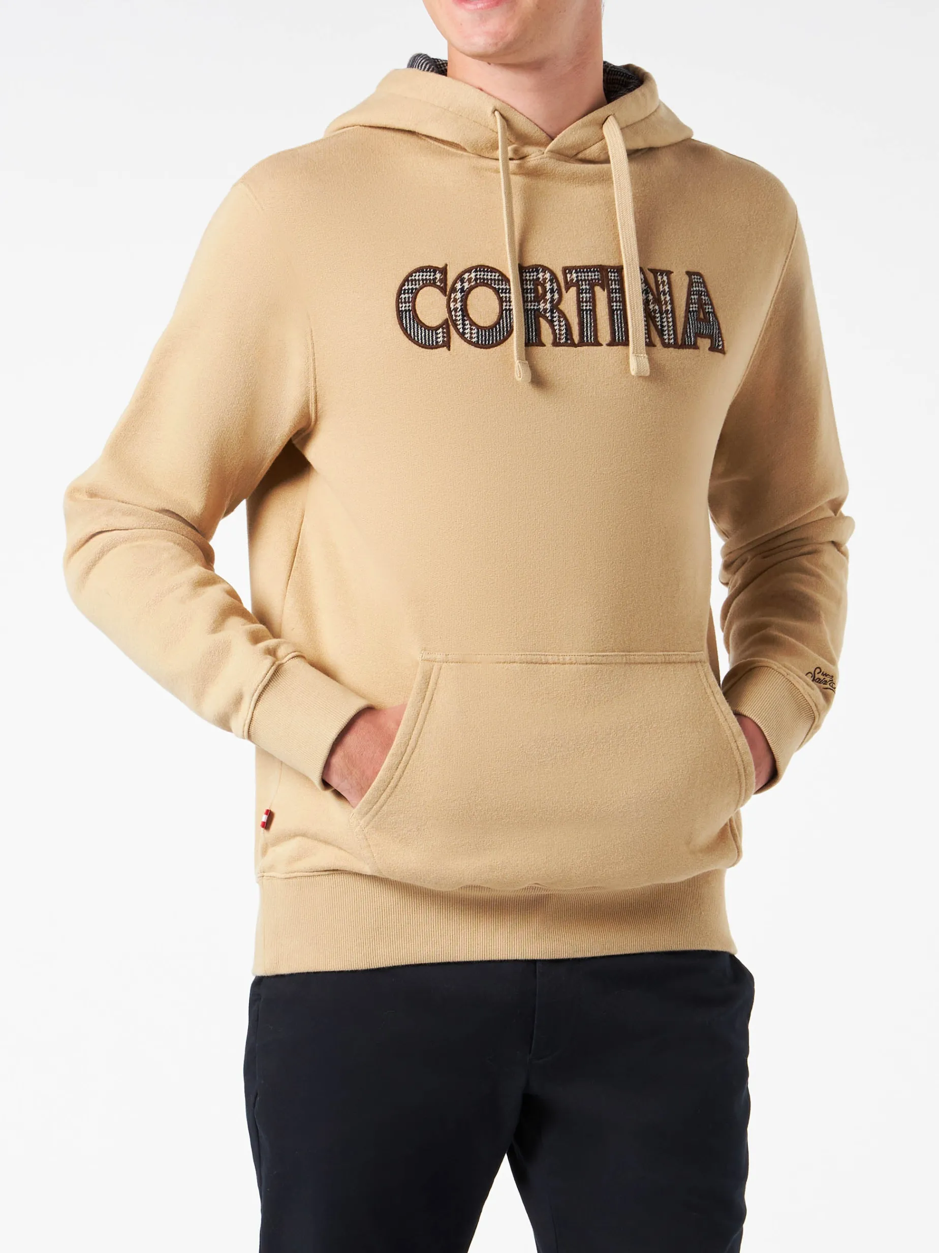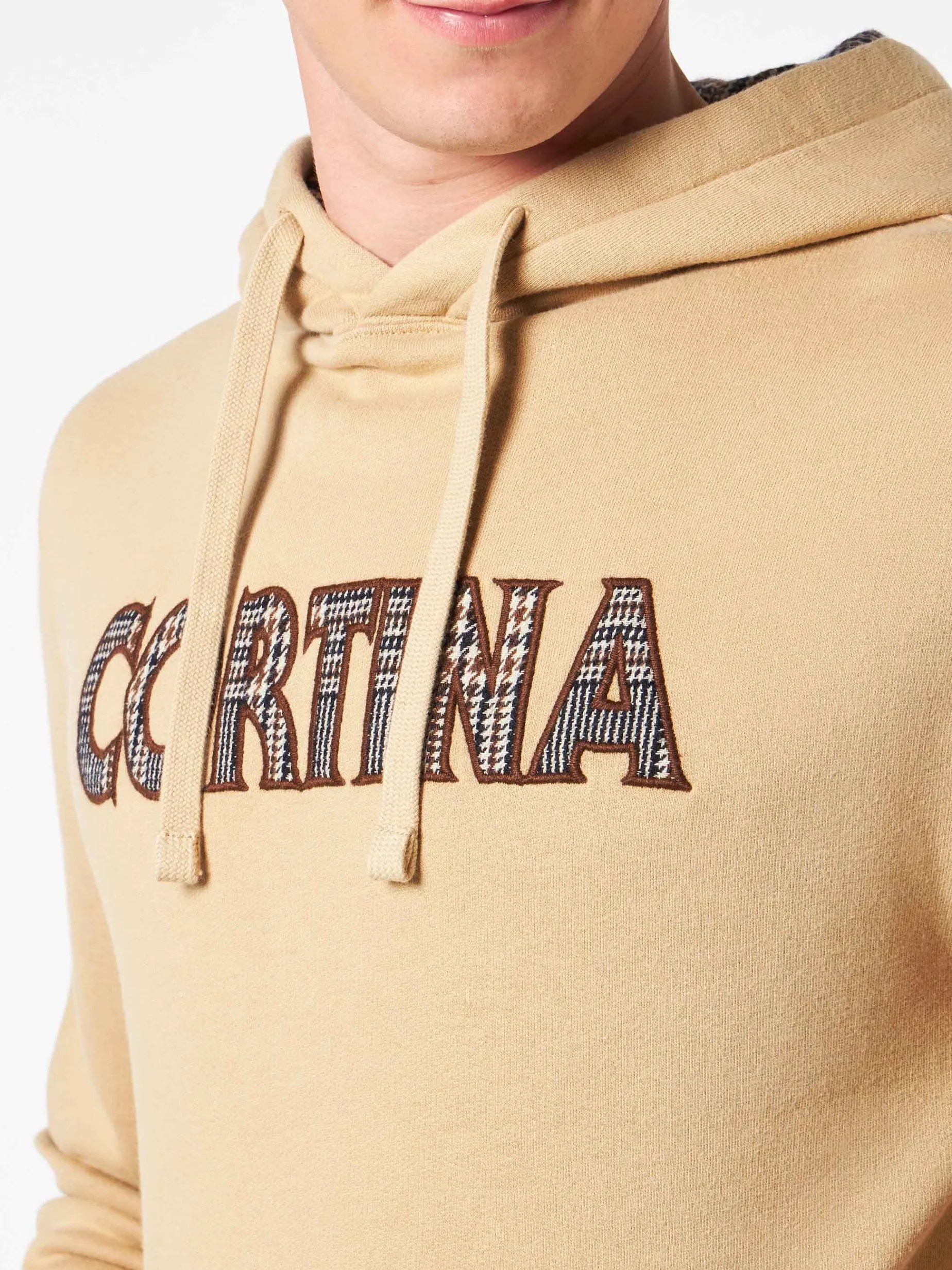 Felpa da uomo beige con patch Cortina