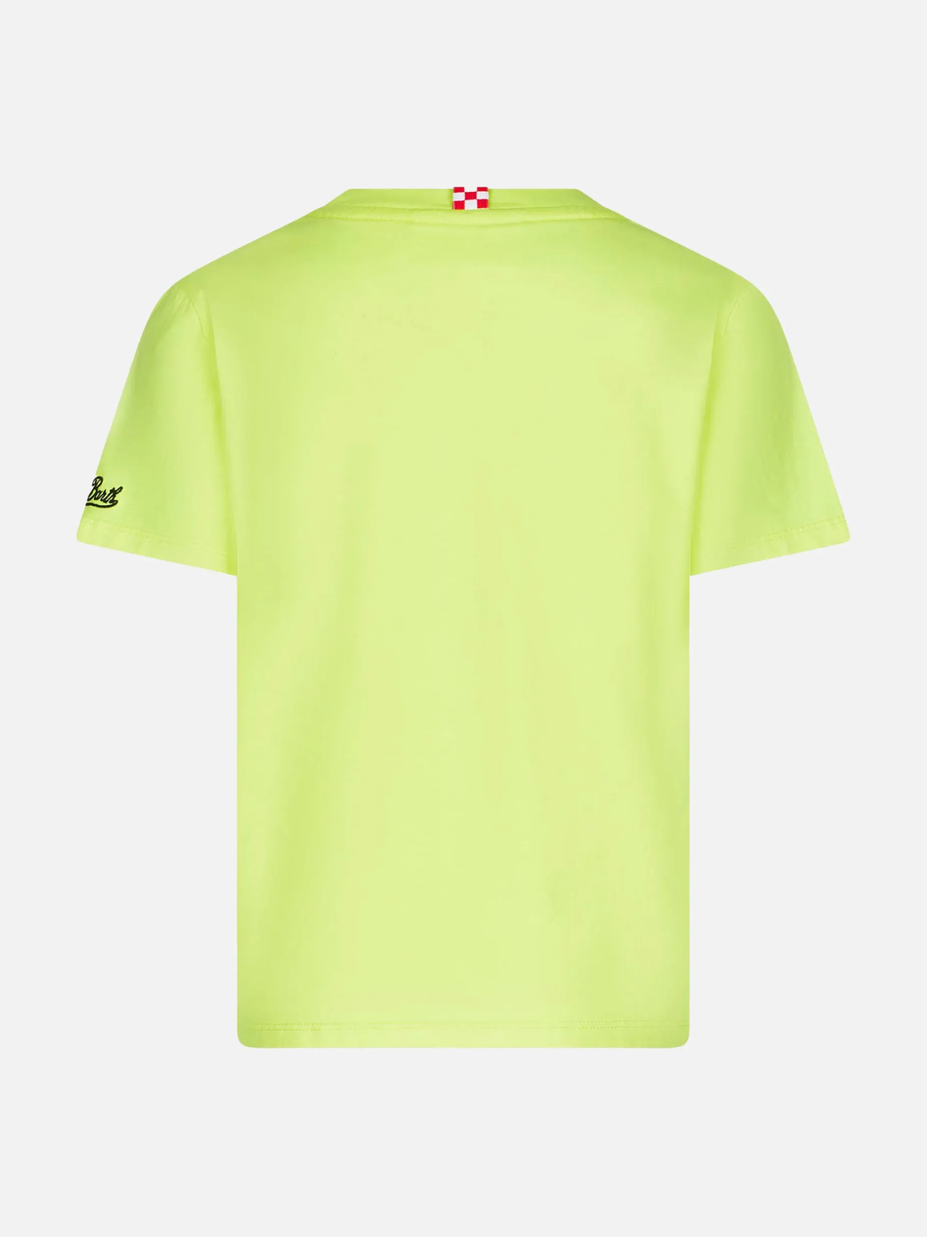 Stampa Snoopy King of the Beach su sfondo giallo fluo