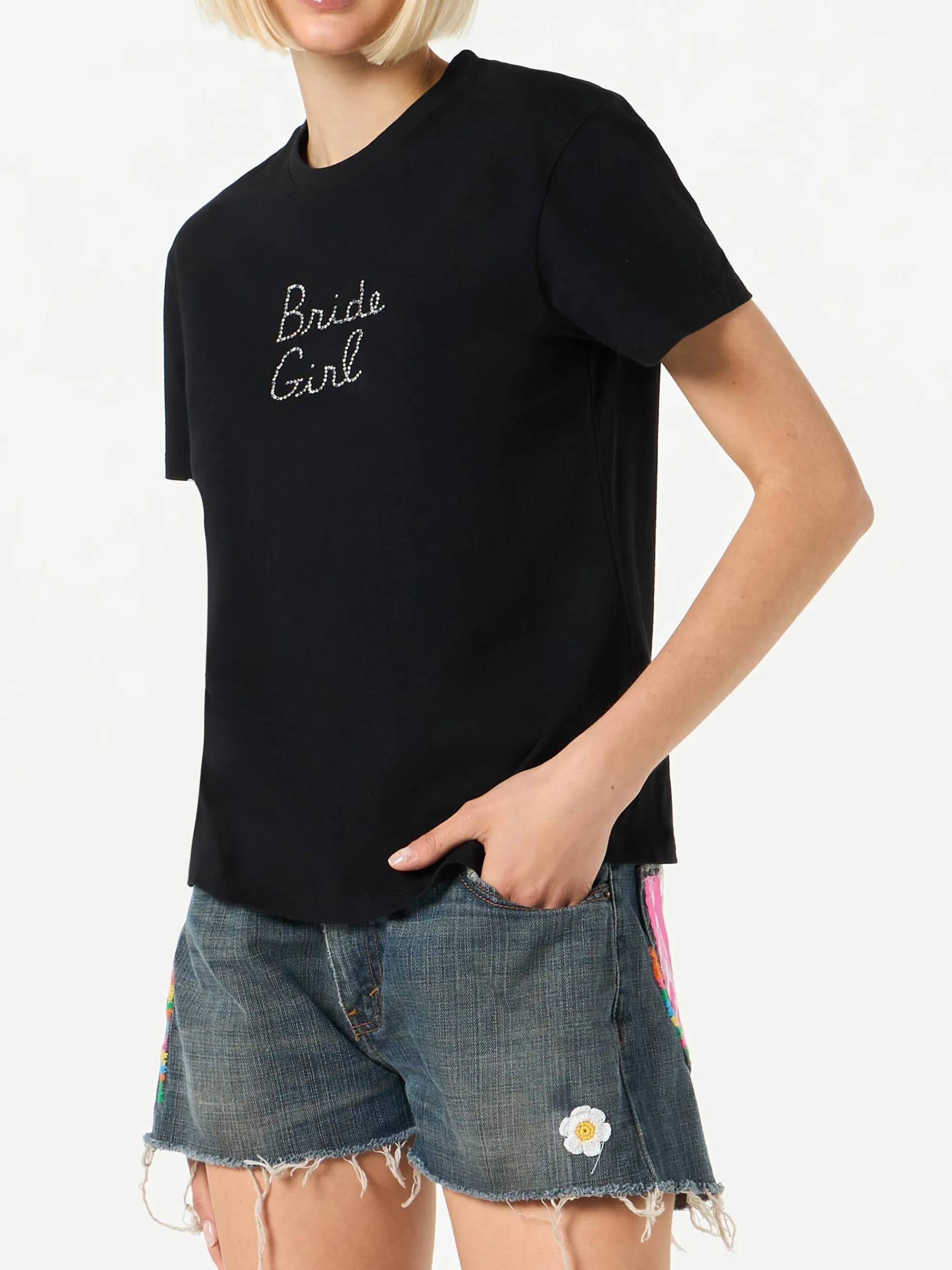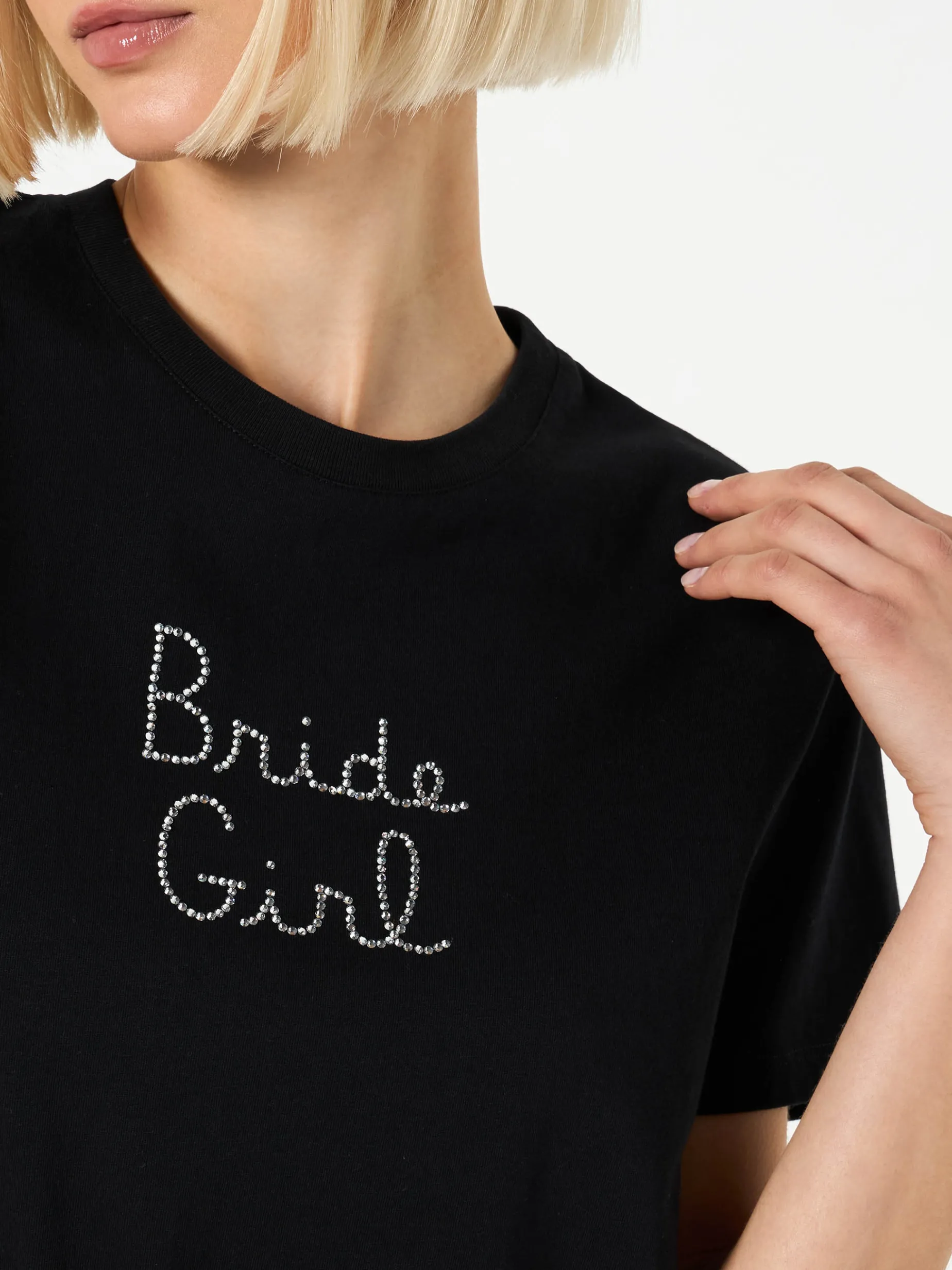 T-shirt da donna in cotone con ricamo strass Bride Girl