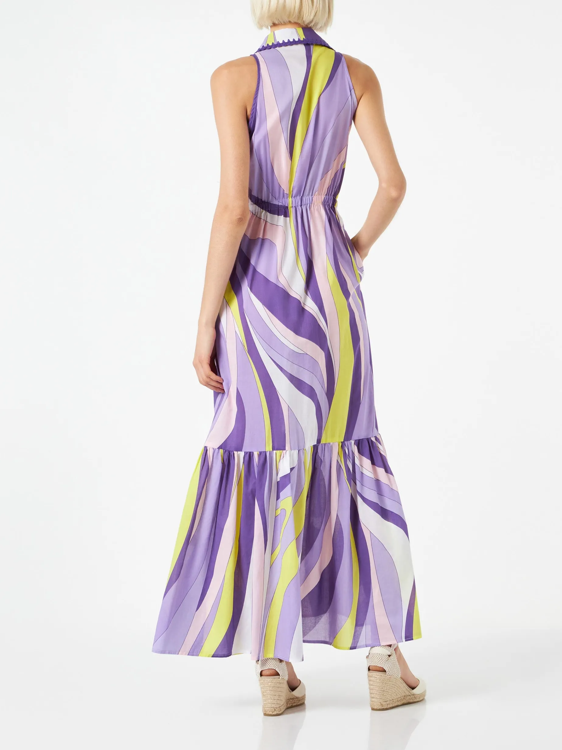 Abito da donna allacciato al collo con stampa onde