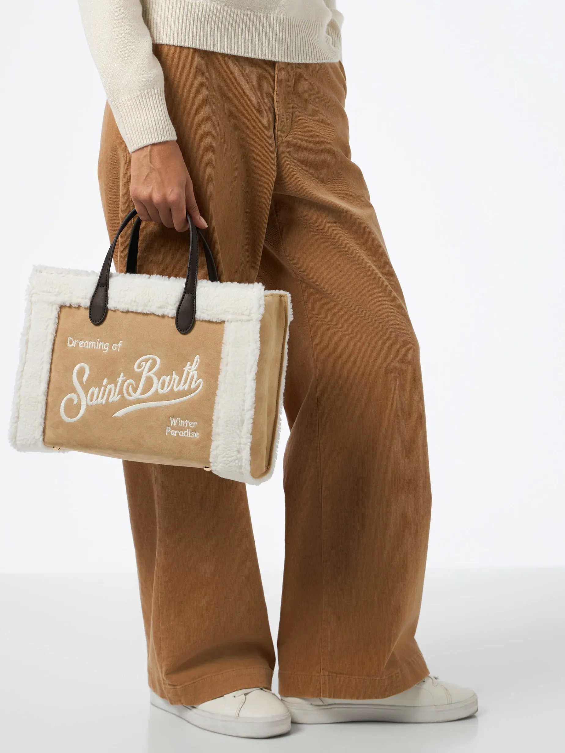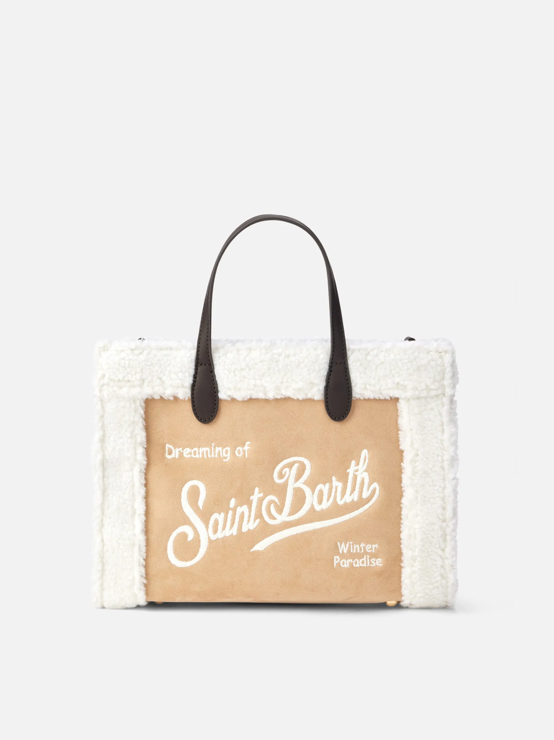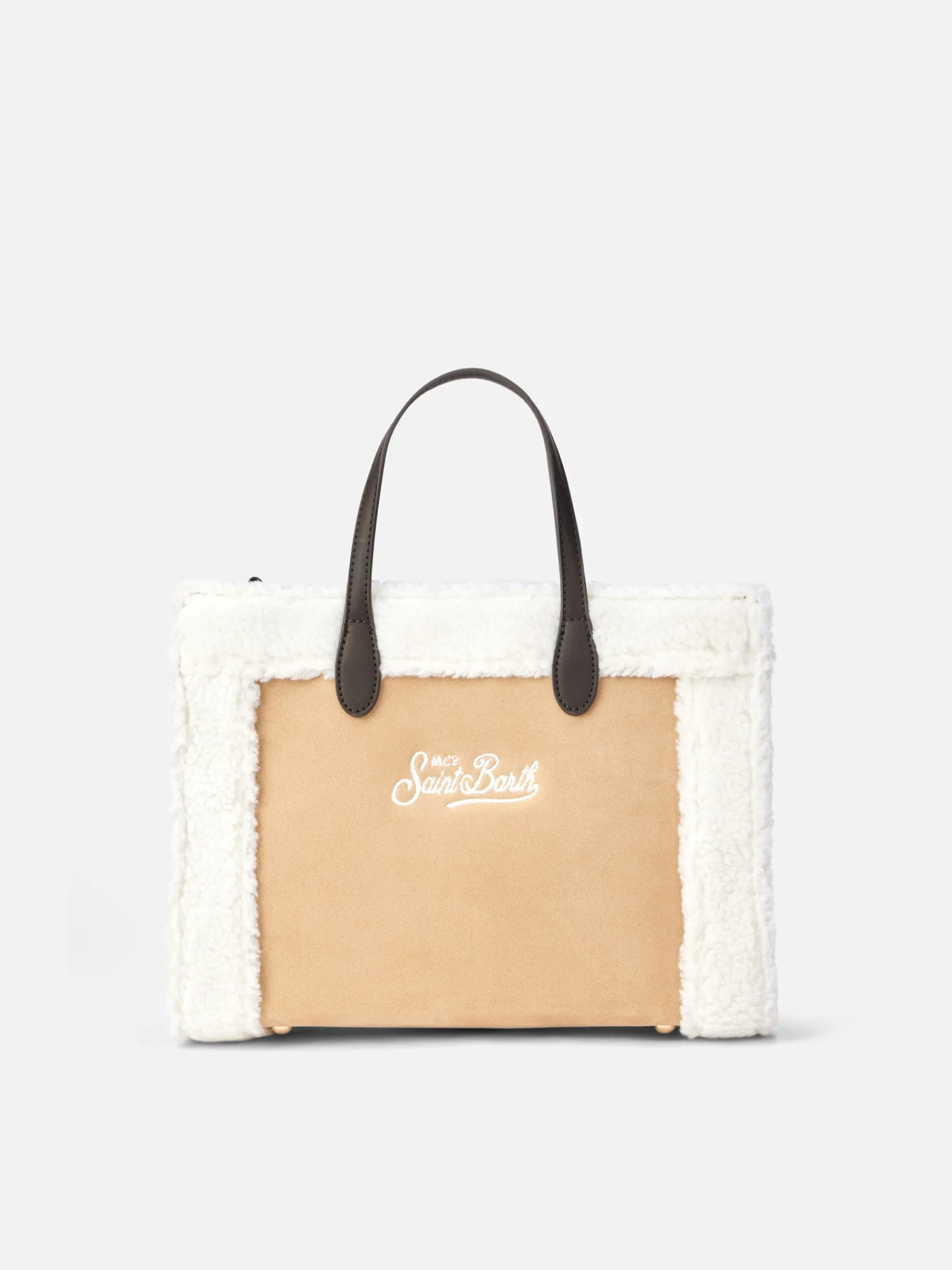 Borsa Vivian beige con dettagli in sherpa