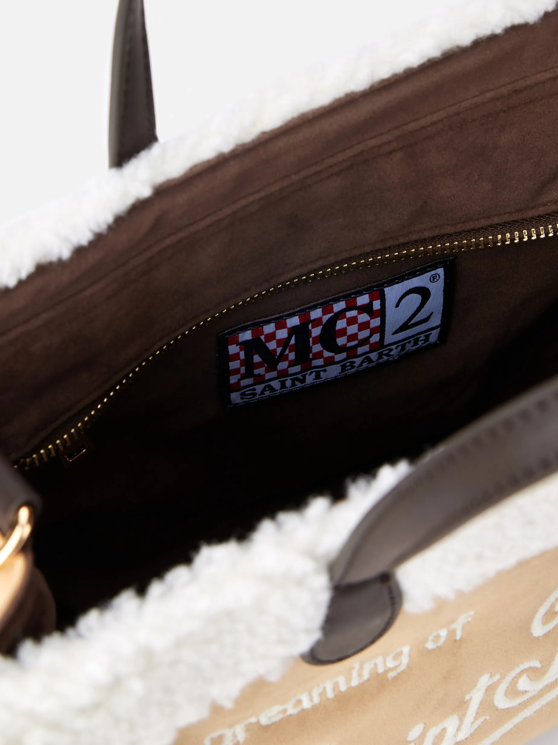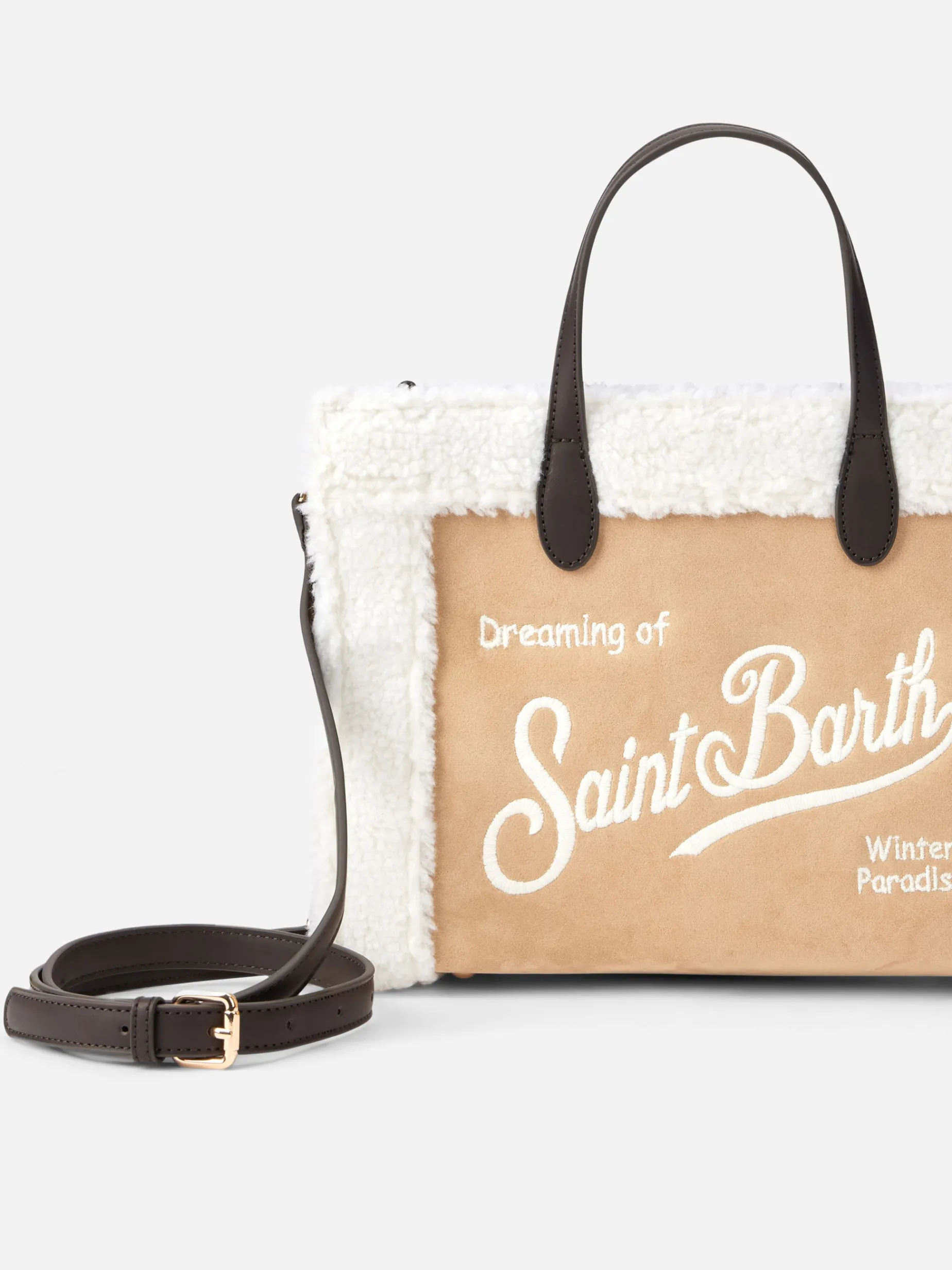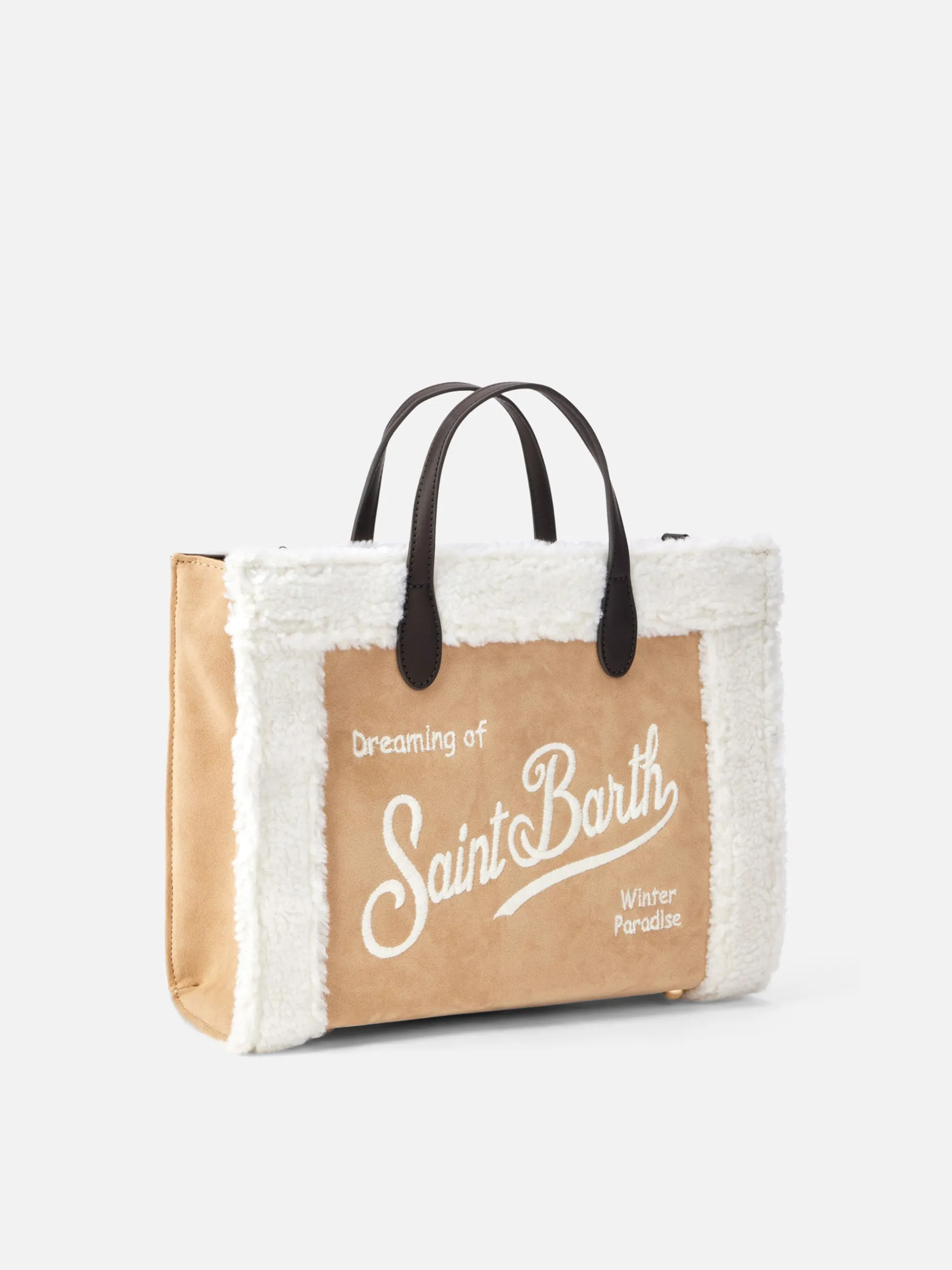 Borsa Vivian beige con dettagli in sherpa