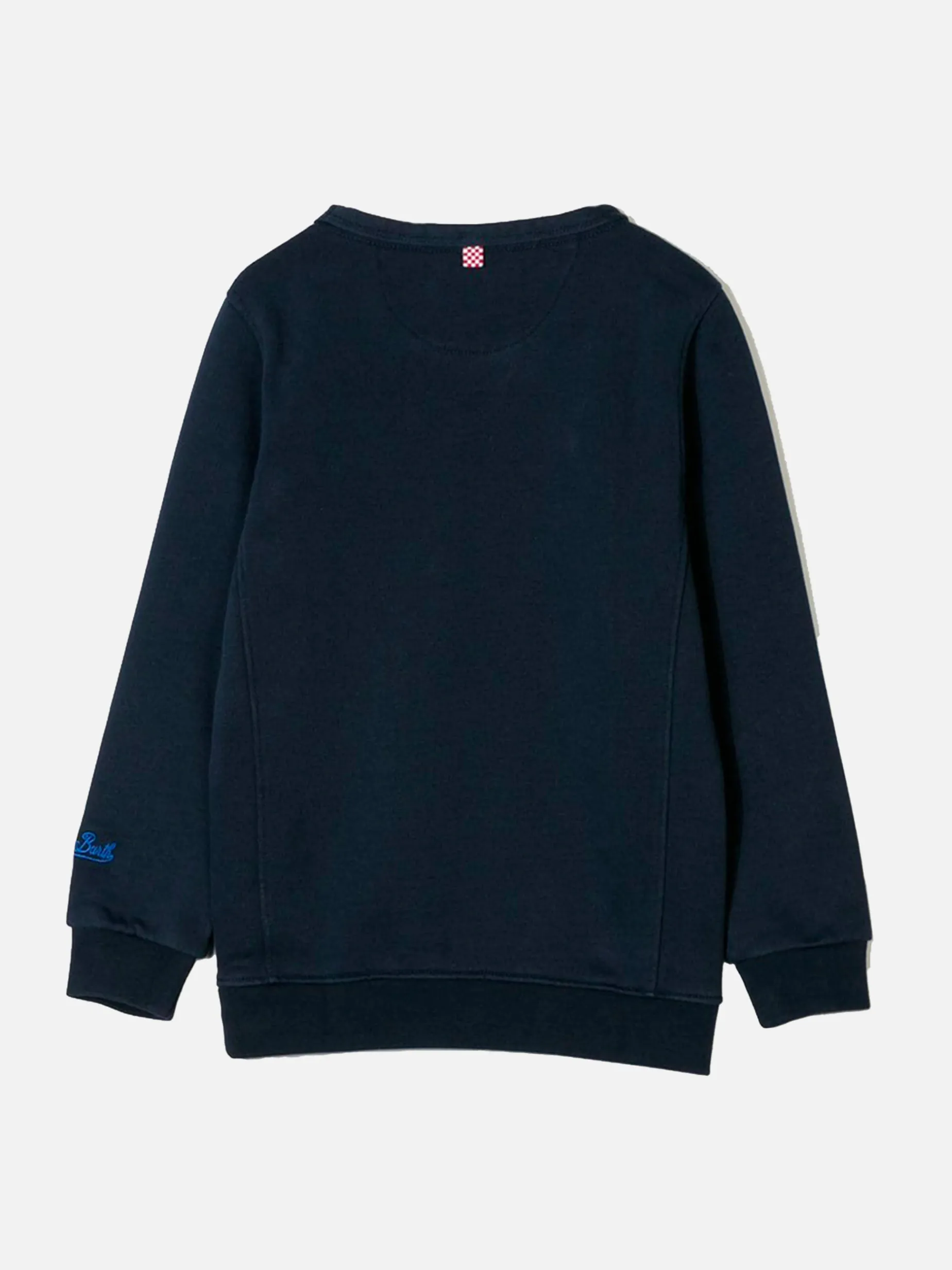 Felpa Bambino , taglia comoda, tessuto in cotone Blu Navy, maniche lunghe, scollo classico. Camicia Casual De St. Barth. Fatto in Italia. Modello Bobby KOMBI61.