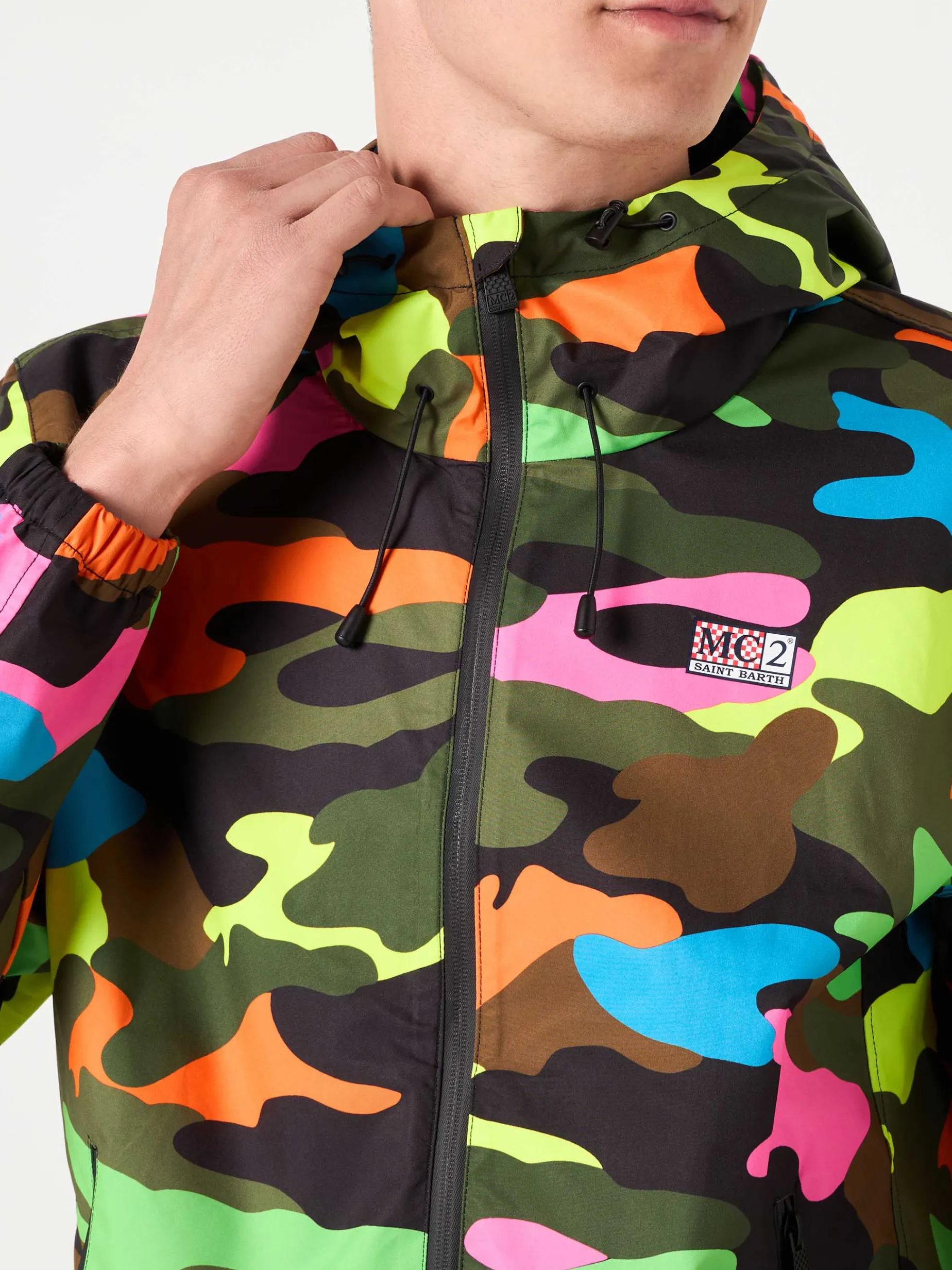 Giacca a vento da uomo con cappuccio con stampa mimetica