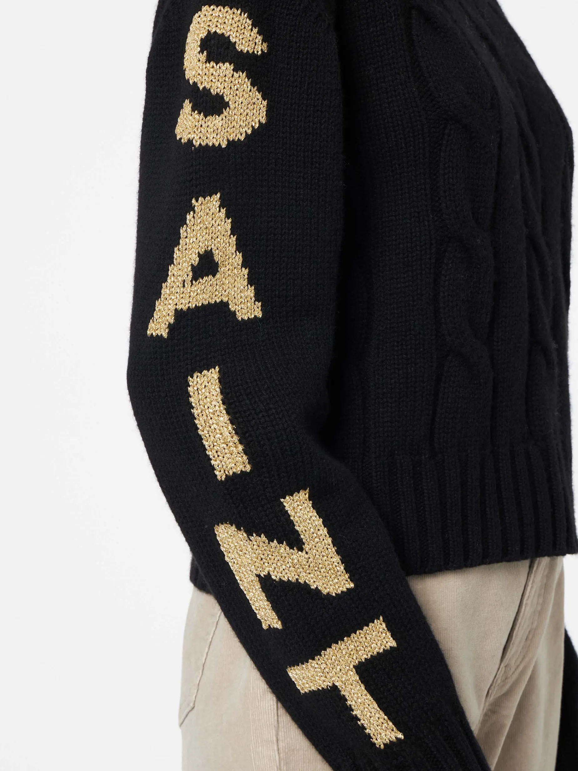 Stampa jacquard Saint Barth in lurex oro sulle maniche