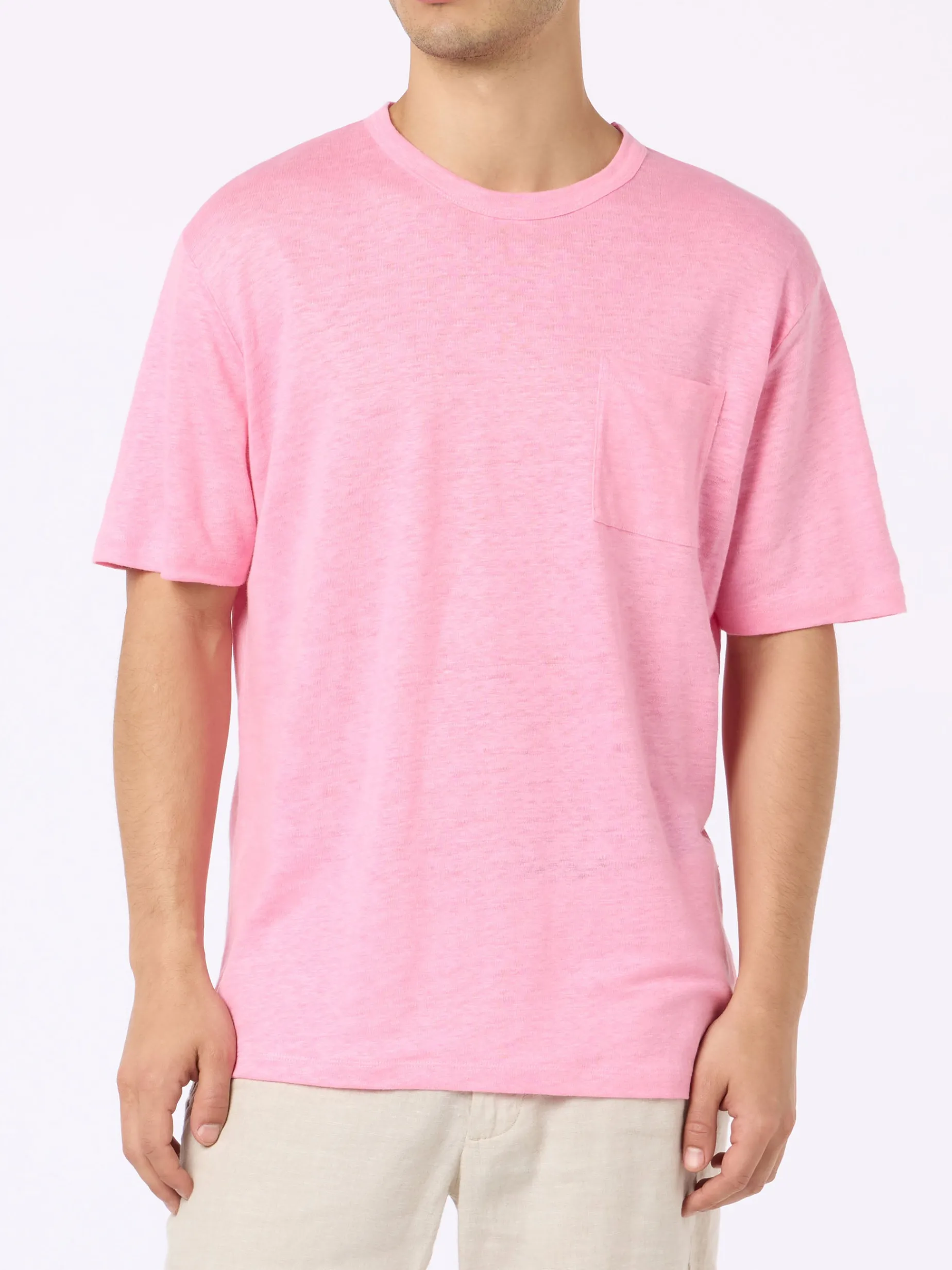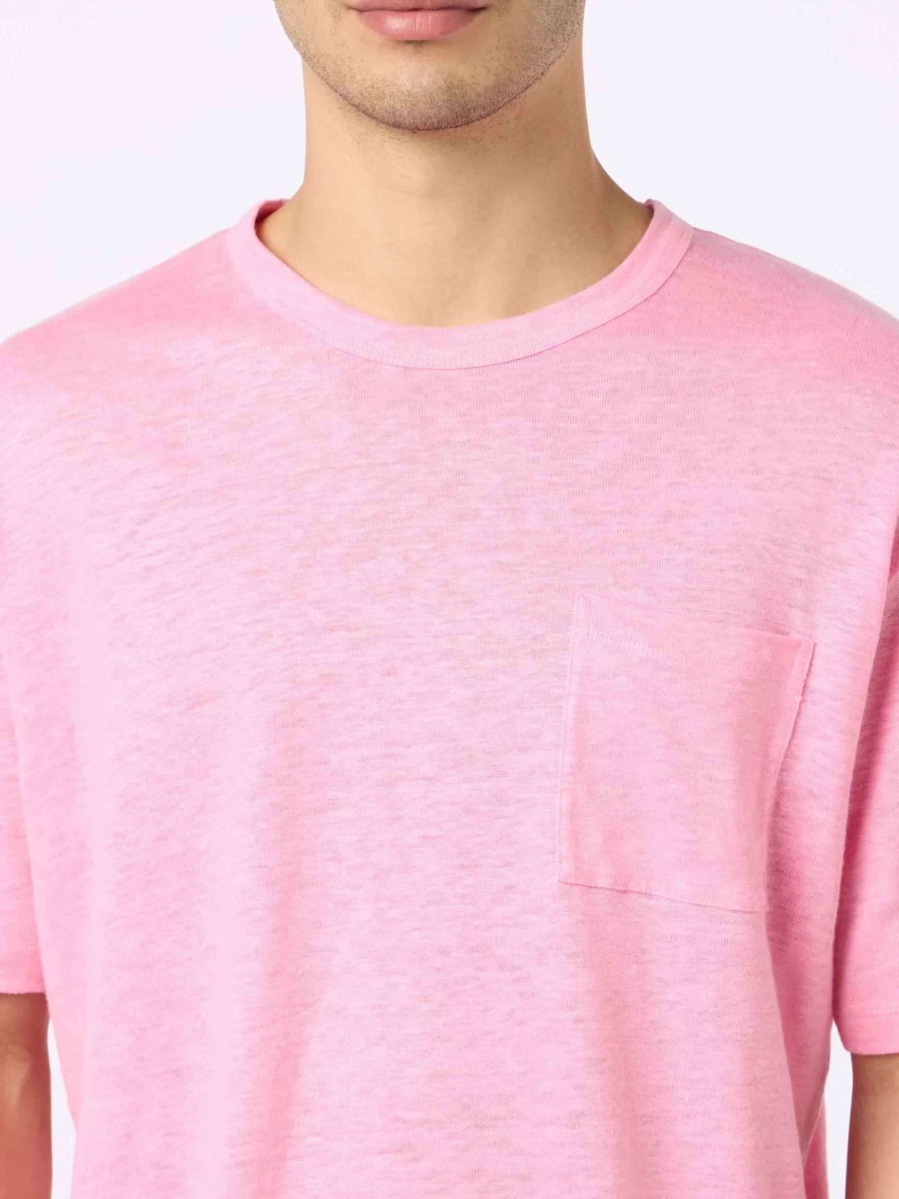 T-shirt da uomo in jersey di lino con taschino